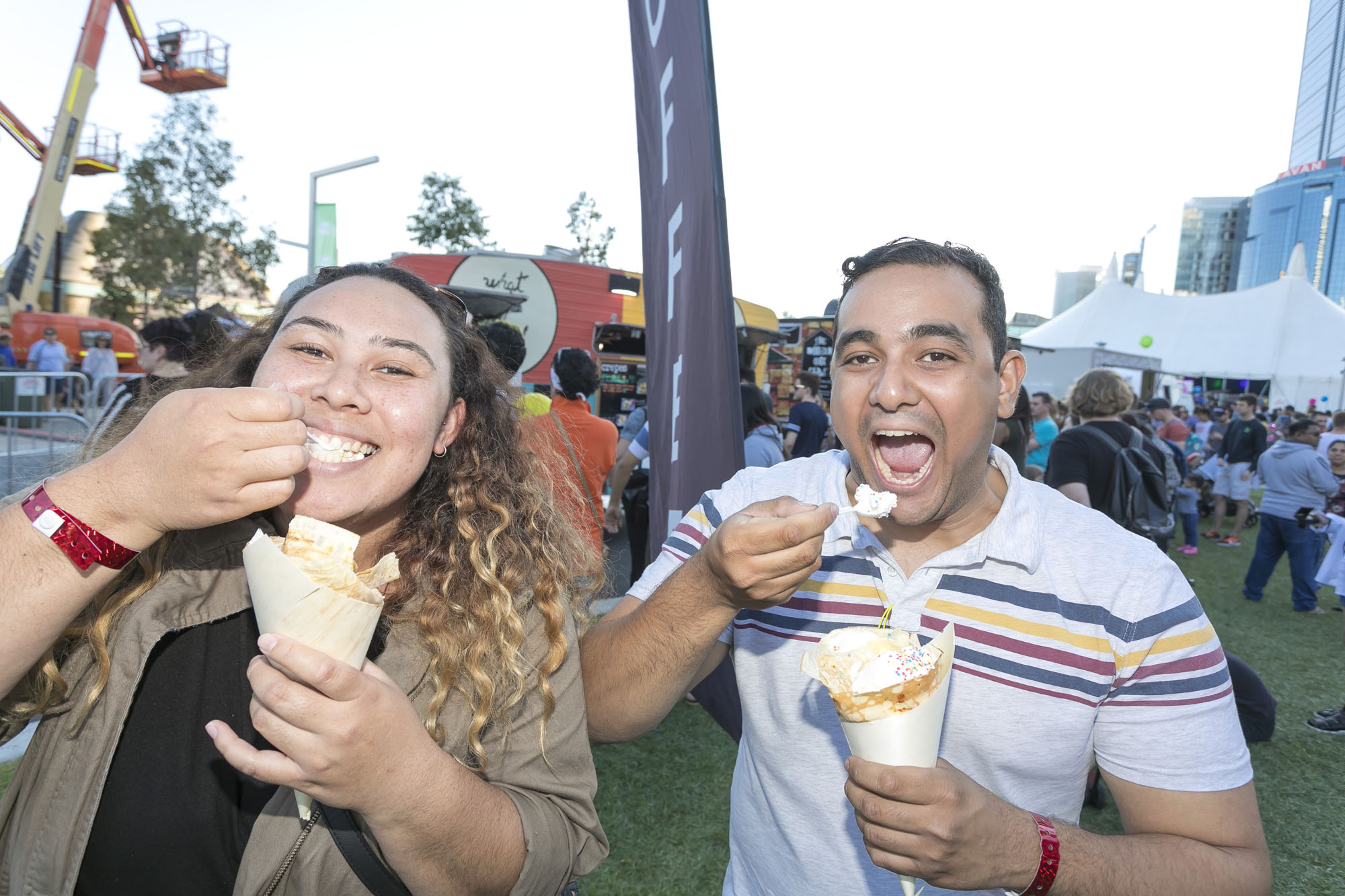 Document event sculptures in relation to crowds and other installations.